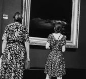 Así, el contraste entre la quietud de la obra de arte, fija en la pared, siempre la misma, y la vida que desprenden quienes ante ellas se sitúan, a pesar de haber sido inmortalizados a su vez por la cámara de Andrade, cala rápidamente en el espectador de esta muestra, que no podrá evitar sonreír ante muchas de las fotografías y pensar en cómo nos ven los demás cuando no nos sabemos observados, cómo son nuestras reacciones a los ojos de otro.