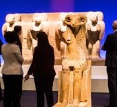 También incluye algunas piezas de grandes dimensiones, entre las que destaca la que cierra la muestra, de más de cinco toneladas de peso de granito rosa. Se trata de un grupo estatuario que muestra a los babuinos que formaban la base del obelisco oriental del templo de Luxor. Otras piezas de grandes dimensiones son las estatuas Esfinge real con el nombre de Acoris o León tumbado sobre un costado.