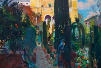 Este grupo estará encabezado por tres obras de Joaquín Mir e incluye también lienzos de Joaquín Sorolla, Santiago Rusiñol, Francisco Iturrino o Hermenegildo Anglada Camarasa, entre otros.
