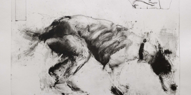 Mayor aborda su concepción de la existencia en el mundo en el que vivimos, que filtra con la mirada y transforma en el papel, explorando la figuración y la materia plástica, manchas y grafismos que crean una visión desgarradora. Encabeza la muestra La Busca (2015), obra con la que el artista ganó el premio Jóvenes Creadores 2015 que otorga Calcografía Nacional a la creación gráfica.