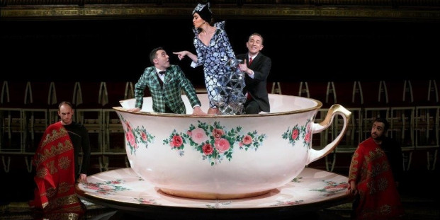 Las seiscientas butacas del patio han sido desmontadas y en su lugar se ha instalado el escenario: una gran circunferencia con suelo de espejo que, entre otros muchos efectos sorprendentes, llega a convertir a la majestuosa lámpara en una protagonista más de la obra. Este espectáculo, concebido como una propuesta coral única e indivisible, cuenta con un reparto integrado por Cristina Faus, Roko, Gurutze Beitia, María José Suárez, Ángel Ruiz, José Luis Martínez, Iñaki Maruri, Axier Sánchez, Mitxel Santamarina y veinte bailarines.