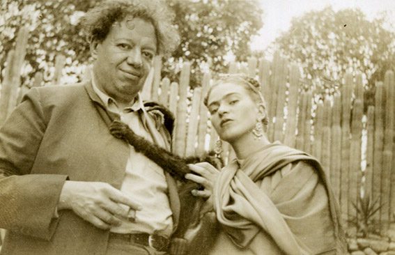 Es bien sabido lo tormentoso de la relación sentimental que sostuvo con uno de los máximos representantes del muralismo, Diego Rivera (Guanajuato, 1886-Ciudad de México, 1957), quien también influyó significativamente en su obra. Aunque no se dedicó a pintar murales como su esposo, la grandeza y el simbolismo del movimiento se reflejan en sus pinturas. Así, su obra El marxismo dará salud a los enfermos (1954) evidencia una clara influencia del muralismo en la manera de abordar temas sociales y políticos, así como su muy definida ideología comunista, usual en la época (no olvidemos que en 1937 Frida y Diego recibieron en La Casa Azul a León Trotsky, donde vivió la mayor parte de su exilio mexicano).