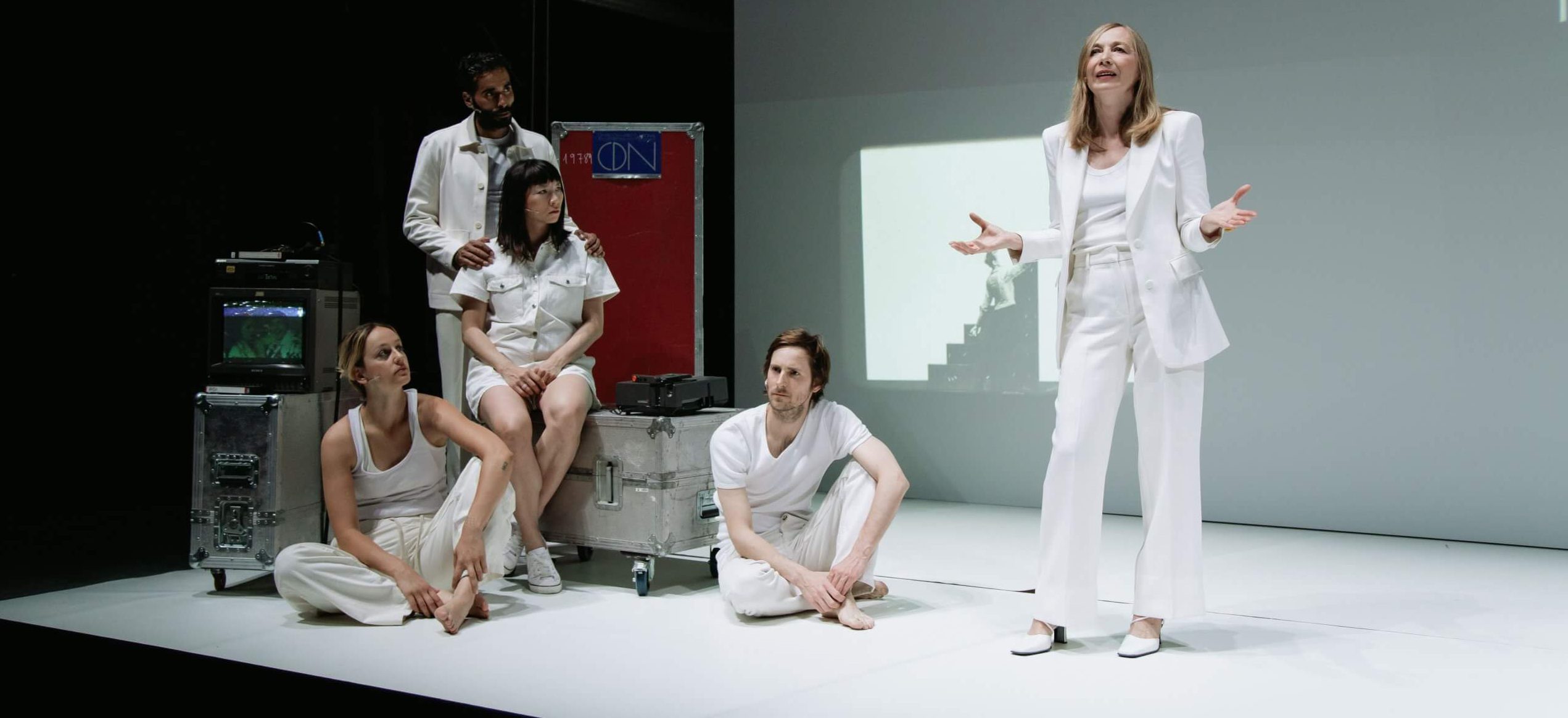 Lentamente se sube el telón y vemos a una bailarina estirando en el escenario de un teatro, una escenografía imponente la rodea, escaleras que crean una doble y triple altura, bambalinas, focos, calles… Un gran teatro dentro del teatro, y en el extremo derecho de éste, una especie de cubo rojo que permanece tapado. De pronto aparece, con actitud de resentimiento, un tal Boris en escena, buscando a André Fêikiêvich; es entonces cuando empezamos a saber de este personaje, sobre el que girará toda la trama.