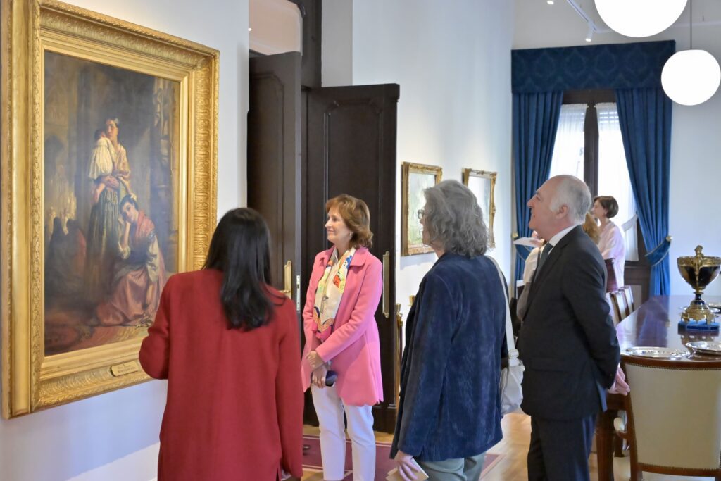 El discurso expositivo se integra con naturalidad en la arquitectura del palacio. Cada sala funciona como un escenario donde las obras dialogan con los materiales nobles, las vidrieras y los elementos decorativos. La disposición permite que el visitante descubra la colección mientras avanza por el edificio, sin separar la experiencia artística de la espacial.
