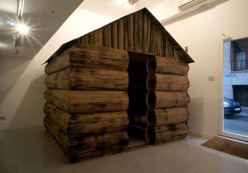 En el interior de esta cabaña-refugio hay herramientas, documentos y otros materiales de trabajo. En sus mismas palabras, «el papel como un campo de batalla donde luchar contra los trazos impuestos para contar mi imagen del mundo».