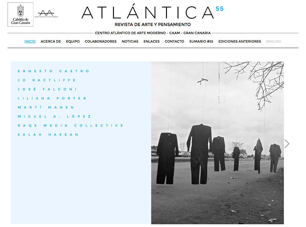 Esta primera edición digital, que corresponde al número 55, incluye colaboraciones de Salah Hassan, José Falconi, Miguel Ángel López, Martí Manen y Ernesto Castro, así como textos de su director, Octavio Zaya, y de Omar-Pascual Castillo, director del CAAM.