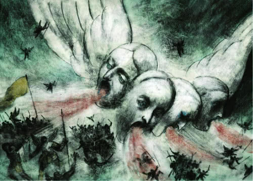 Así, el ángel rebelde provoca la perdición de la nueva criatura (que habrá de llevar siempre en sí esa doble naturaleza, angélica e infernal) y abre un nuevo tablero de juego para su eterna disputa con Dios.