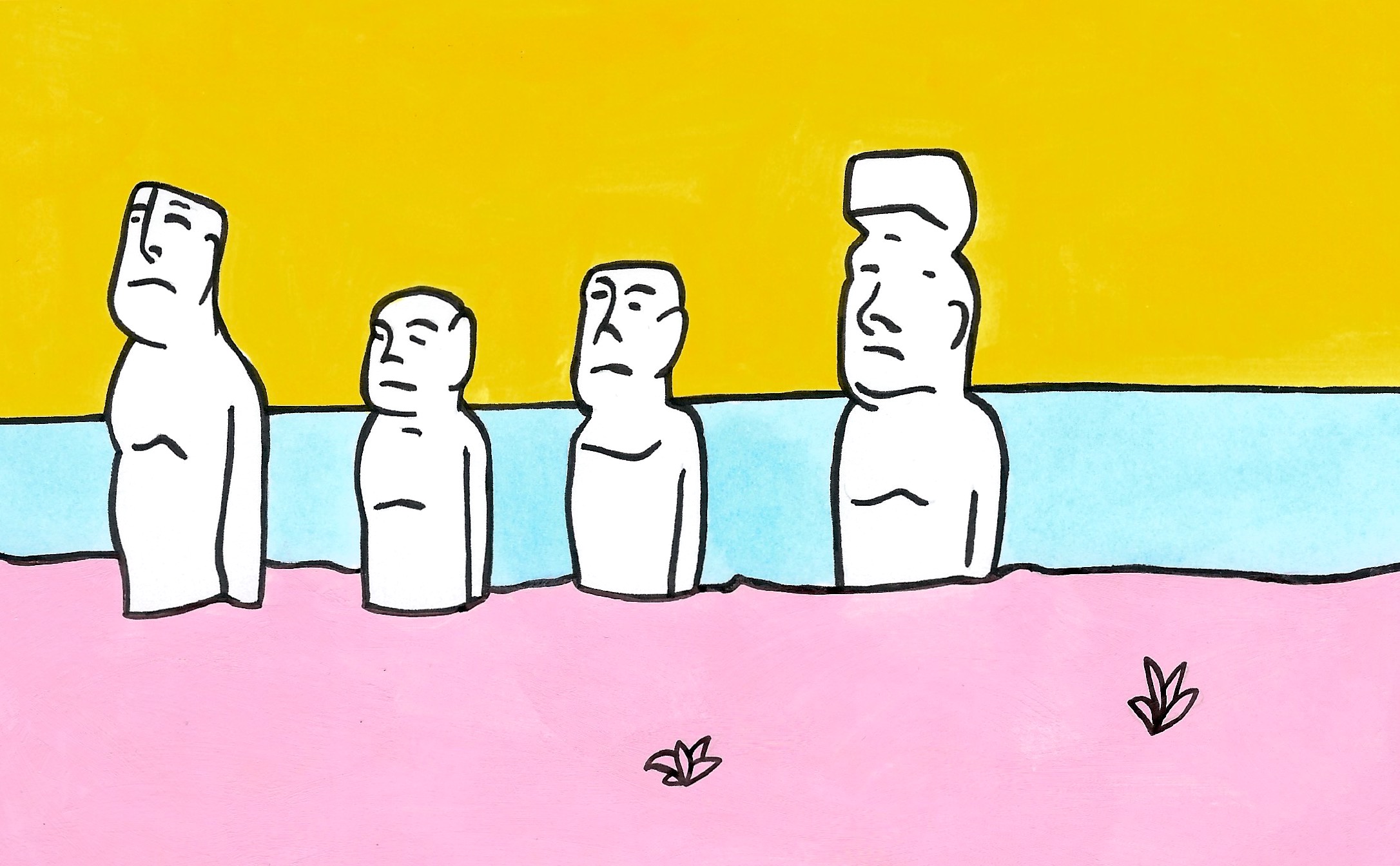 Inspirado por una montaña cercana que ve a través de su ventana, el artista cogió un buen día la mochila, una botella de agua y un diario, y se lanzó a explorar. En ella encontró una cueva determinante que escondía un aro tricolor y ¡mágico! Con este puede teletransportarse en el espacio (y quién sabe si también en el tiempo). Así comenzó una aventura que le ha llevado hasta la Cueva de Chauvet, en Francia, una de las más significativas en cuanto a arte prehistórico se refiere; las Pirámides de Guiza o los Moáis de la Isla de Pascua.