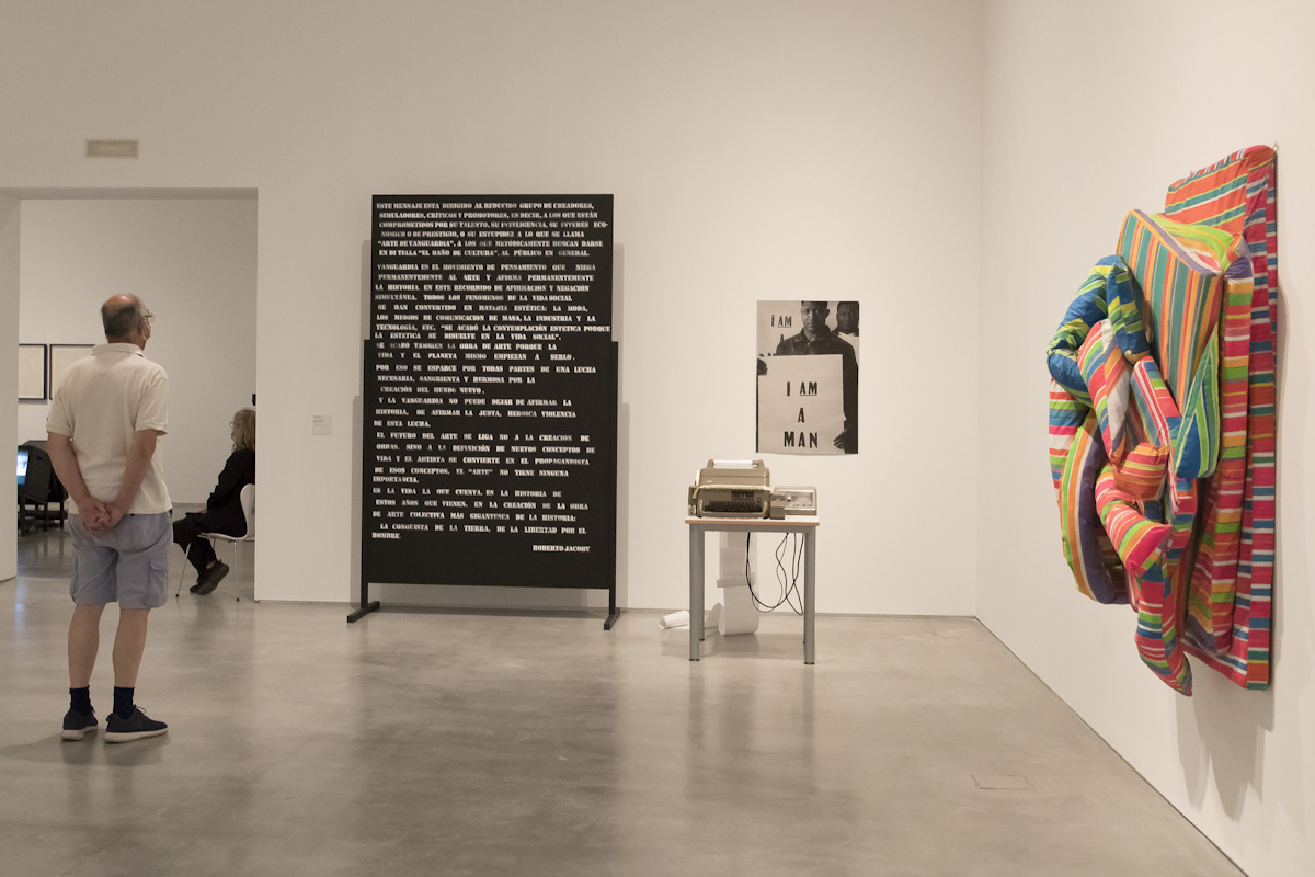Rosario Peiró, jefa de Colecciones del Museo, destaca que este nuevo episodio «nace en la cuarta planta porque de alguna manera es la continuación de una época, finales de los sesenta, en la que el espacio se convierte en el centro de atención de los artistas más experimentales y de vanguardia, y que tiene un espacio muy específico, muy situado y que es, además, completamente radical en diferentes países de América Latina. Por eso empezamos con la Tropicália brasileña, porque es, digamos, el espacio más medioambiental, más rompedor, que destroza completamente la idea de objeto artístico y lo pasa al ambiente, al cuerpo, a la performance… y es a partir de esa experimentación que está estructurada toda la planta. Por lo tanto, experimentación; después, colectividad, porque la mayor parte de los artistas que presentamos trabajan colectivamente, y posteriormente está la gráfica, porque también es muy importante como material colectivo en ese momento y es una de las líneas de investigación y adquisición de nuestra Colección. Por tanto, espacio, territorio, investigación y también radicalidad, una radicalidad que se puede ver en estos países y que no es comparable con nada de lo que está pasando en el resto del mundo en lo que se refiere al arte de vanguardia».