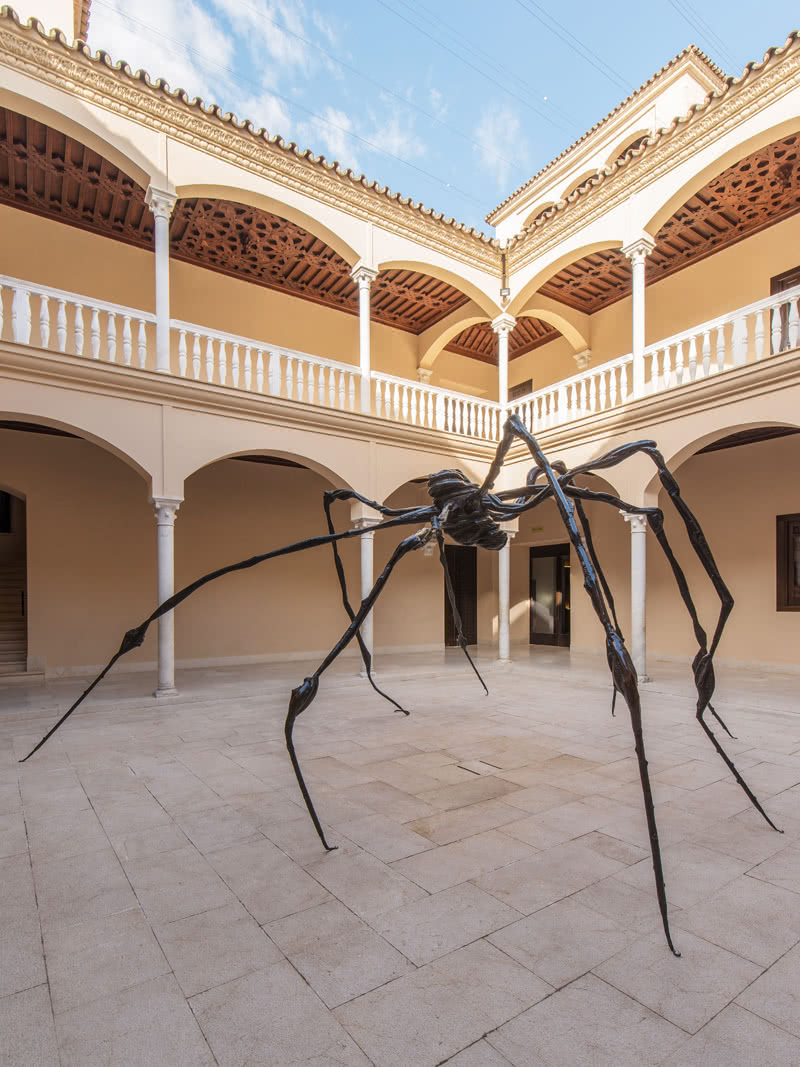 Cuarenta y seis esculturas de bronce, tejido, látex y aluminio, una celda y una pintura se han expuesto en Málaga junto a 53 obras en papel y textiles, muchas de ellas de gran formato o realizadas en series. Comisariada por Iris Müller-Westermann y organizada con el Moderna Museet, un tercio de las más de cien obras de esta exposición nunca antes había sido expuesto. La misma noche de la jornada de clausura, técnicos especializados desmontaron la escultura Araña (1961), una de las obras más reconocidas de Bourgeois, instalada en el patio de la pinacoteca para la ocasión.