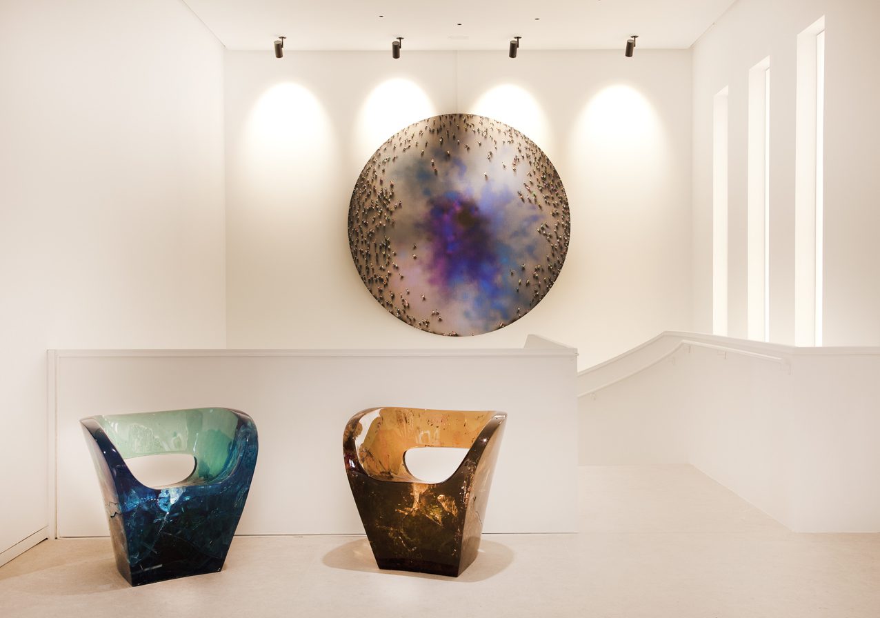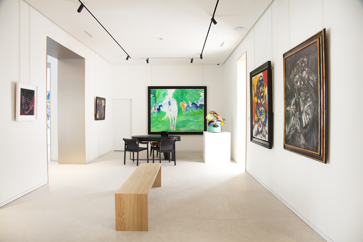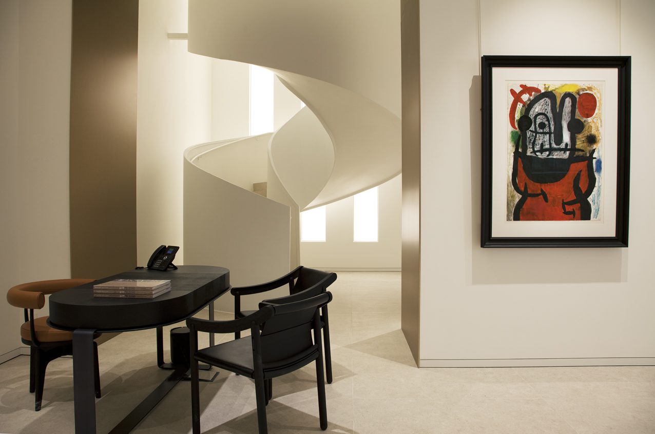 El espacio cuenta con tres plantas y una superficie expositiva de mil metros cuadrados. Con una espectacular escalera helicoidal como pieza central, se divide en siete salas con techos de más de cuatro metros de altura para albergar la colección de obras maestras modernas y contemporáneas de la galería.