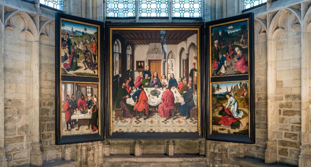 De origen neerlandés, Bouts se afincó en Lovaina, donde se casó en 1448 y permaneció hasta su muerte. Destacado entre los Primitivos Flamencos, su gran obra maestra es el tríptico de La última cena (1464-1467), una joya que se muestra a su vez en la obra maestra para la que fue creada, la iglesia de San Pedro, icono del gótico brabanzón ubicada en el mismo centro de la ciudad.