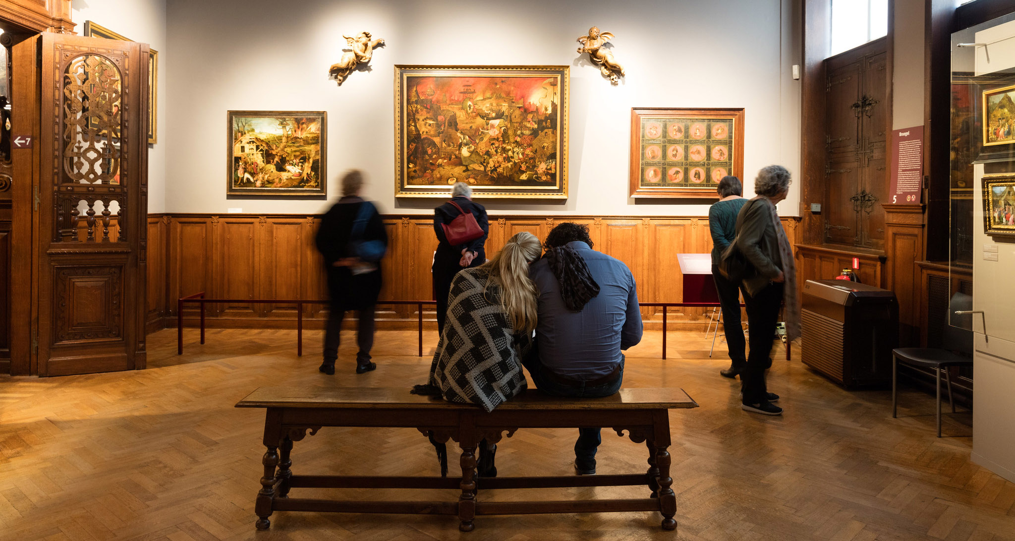 Hasta donde sabemos sobreviven alrededor de cuarenta de sus obras y, aunque repartidas por el mundo, algunas de ellas pueden verse en los Museos Reales de Bellas Artes de Bélgica, en Bruselas, entre ellos el célebre Paisaje de invierno con patinadores y trampa para pájaros (1565) o La caída de los ángeles rebeldes (1562), mientras que la icónica Dulle Griet, también conocida como La loca Meg (1561), puede admirarse en el Museo Mayer van den Bergh de Amberes. Este museo también cuenta con los Doce proverbios, tablas de madera pintadas por Bruegel (1558), cada una de las cuales representa refranes y frases ingeniosas del Flandes de su tiempo.
