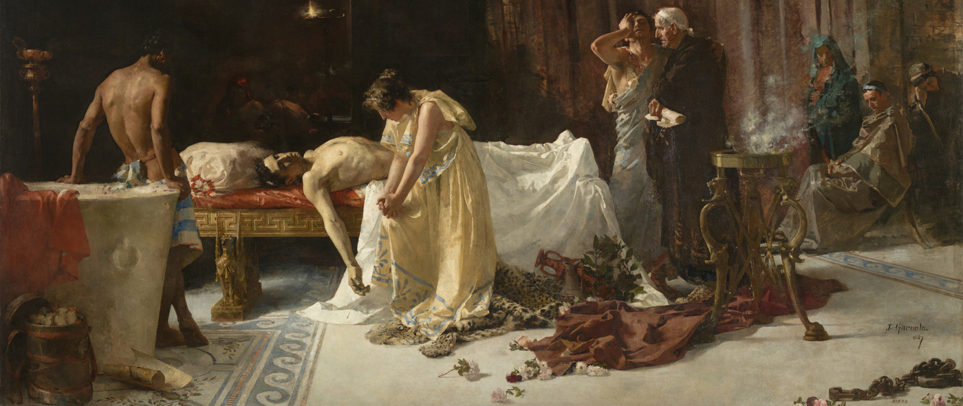 Por Real Orden de 1928, la pintura de Garnelo se depositó en el Instituto Provincial de Jerez de la Frontera (Cádiz), actualmente Instituto de Educación Secundaria “Padre Luis Coloma”, en donde permaneció hasta 2008, cuando se autorizó su levantamiento para su nuevo depósito en el Museo Garnelo.