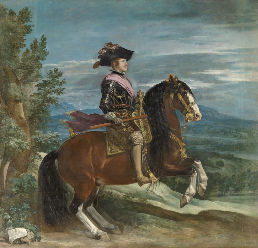 «Felipe IV a caballo» (después de la restauración). Diego Velázquez. Óleo sobre lienzo, 303 x 317 cm. Hacia 1635 Madrid, Museo Nacional del Prado.