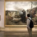 El paso hacia la sala 75, gran galería abovedada, sumerge al visitante en un conjunto de acontecimientos y personajes históricos al servicio de los valores nacionales entonces emergentes a través de obras de gran formato que, en ocasiones, pueden contemplarse junto a su boceto. Aquí se puede contemplar la evolución estilística, igual que en la escultura, desde el purismo académico inicial al realismo y al naturalismo. Una obra en material no habitual, la cera policromada, el modelo del sepulcro de Colón en la Catedral de Sevilla, realizado por Arturo Mélida, amplia la visión finisecular.