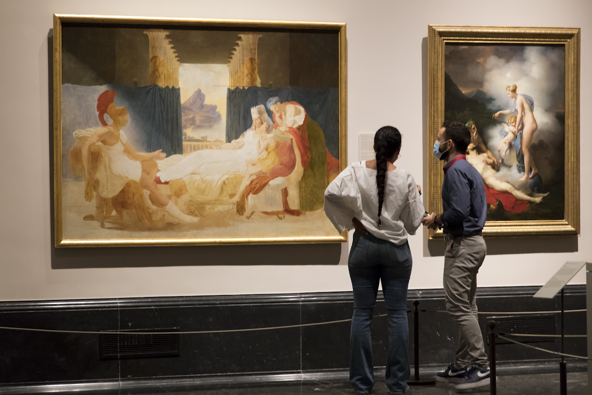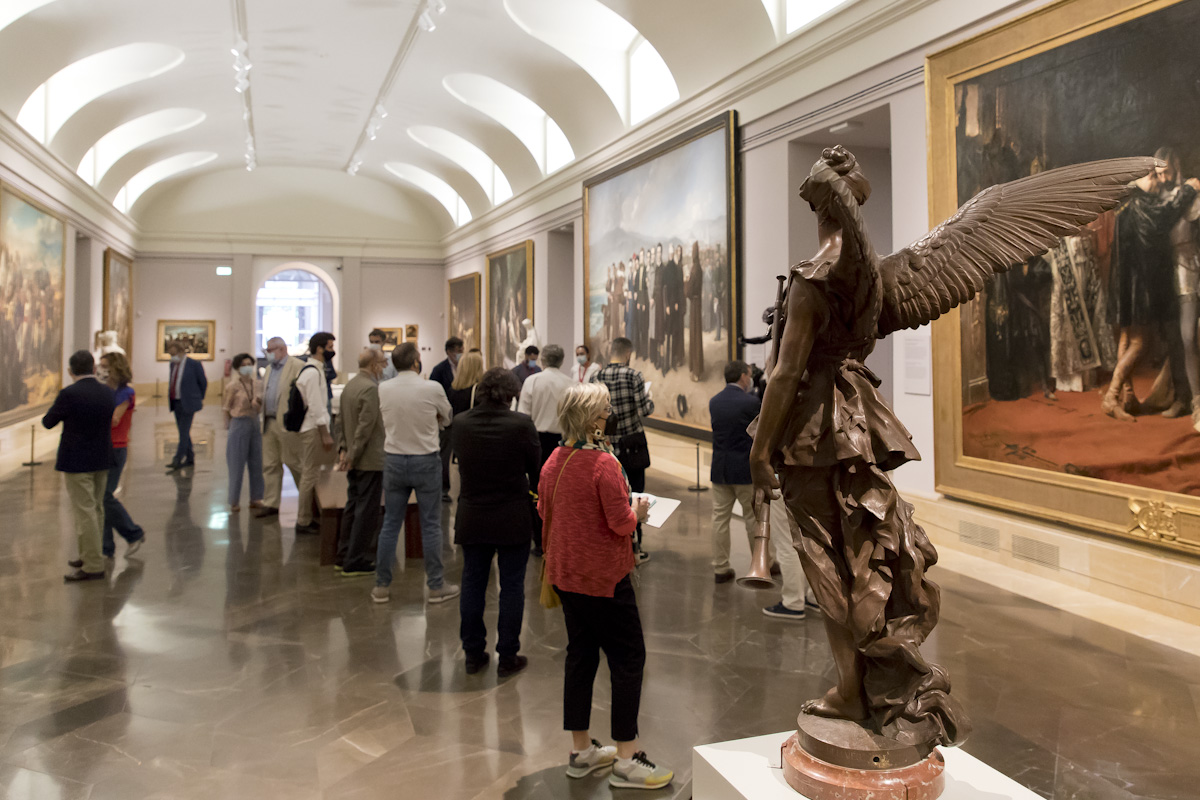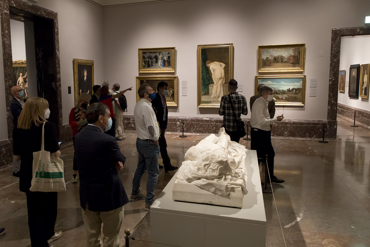 Desde Las pinturas negras de Goya en la sala 67, pasando por el gusto por la mirada al pasado nacional en la sala 75, para terminar en la apertura al siglo XX con la renovación artística e intelectual en España, el recorrido por las 15 salas del ala sur del edificio Villanueva, unos 1.600 metros cuadrados, plantea diálogos entre autores, pinturas y esculturas, y asociaciones que hablan de influencias y admiraciones. Nuevas narrativas que procuran mayor espacio a la pintura social, a nuevas geografías, al mundo en femenino y a las artes decorativas.