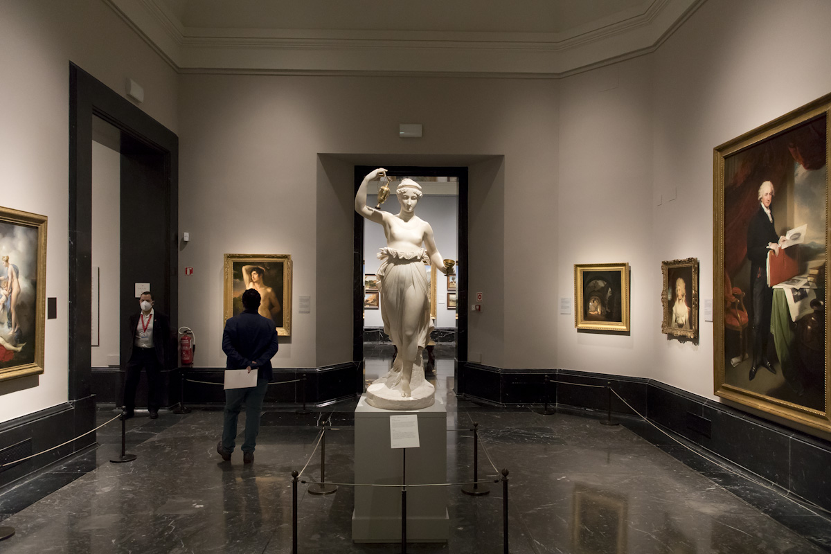 El triunfo del Neoclasicismo en España abarca el primer tercio del siglo XIX y se puede contemplar en la sala 62 a través de obras de algunos de los autores más destacados de su tiempo, como José Aparicio, Juan Antonio Ribera o José de Madrazo. En esta misma sala hay una vitrina con 40 miniaturas, cinco de ellas obras de mujeres, entre las que destaca La amabilidad, una aguada sobre marfil de Marcela de Valencia adquirida por el Prado en abril de este mismo año.
