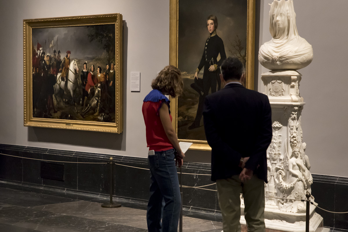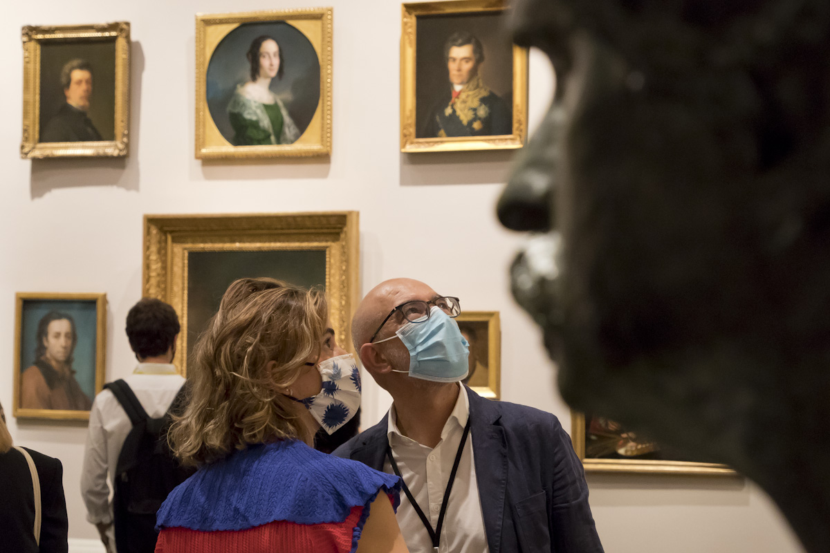 Y si hay una sala especialmente impactante en este recorrido esa es la 62 A. En ella se reúnen 54 retratos y autorretratos, imágenes de los principales artistas y, entre ellos, todos los que fueron directores del Prado en el siglo XIX, a modo de parnaso pictórico y escultórico español.