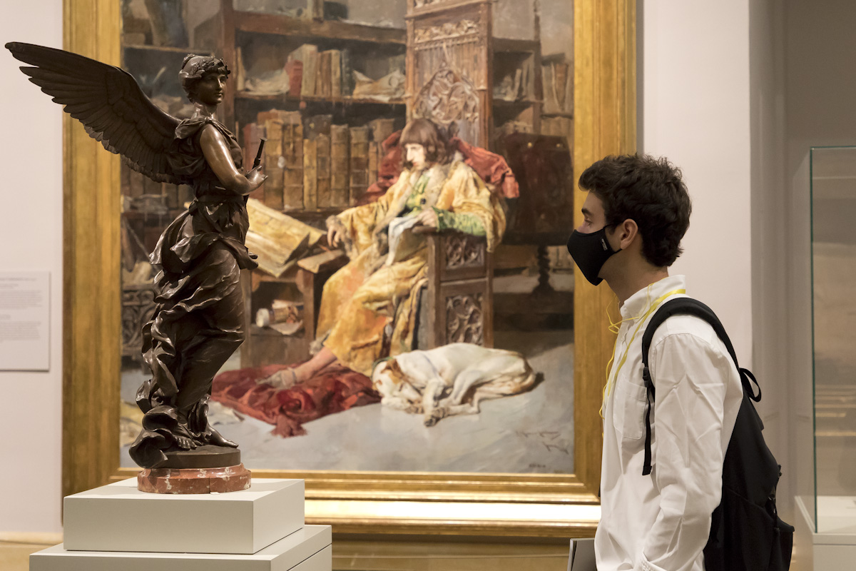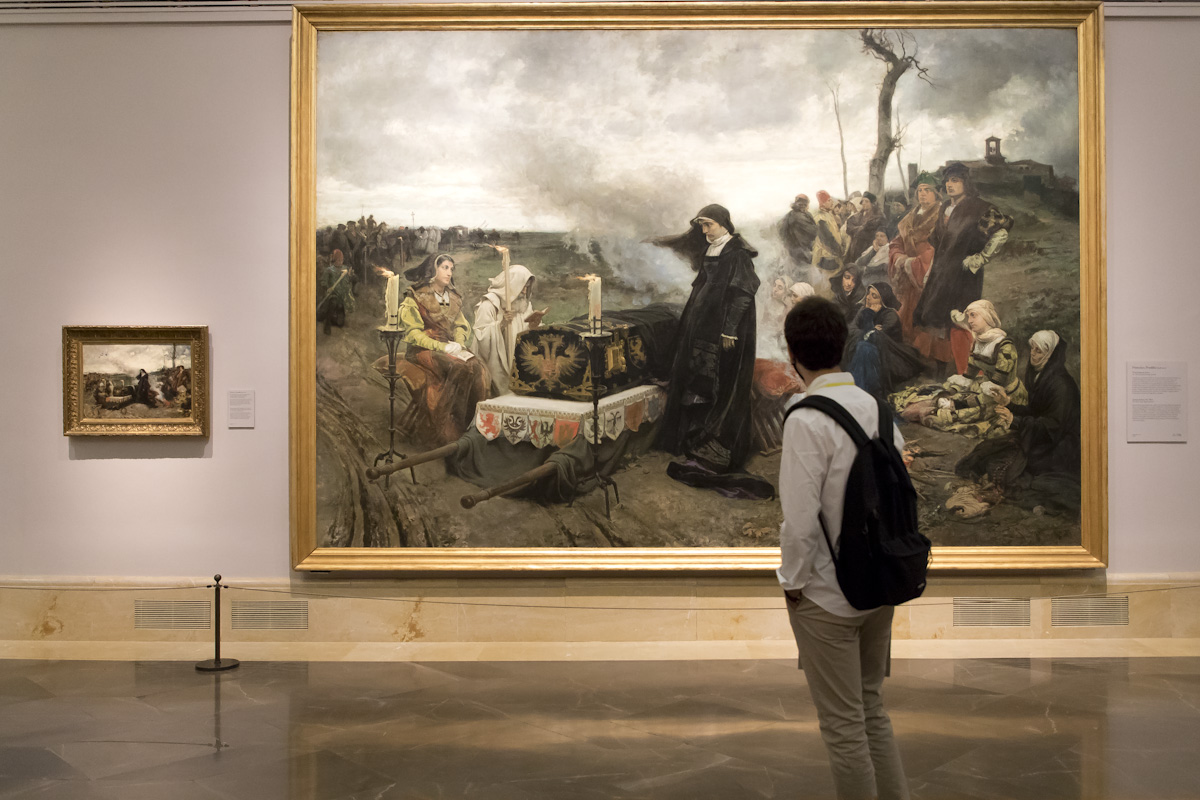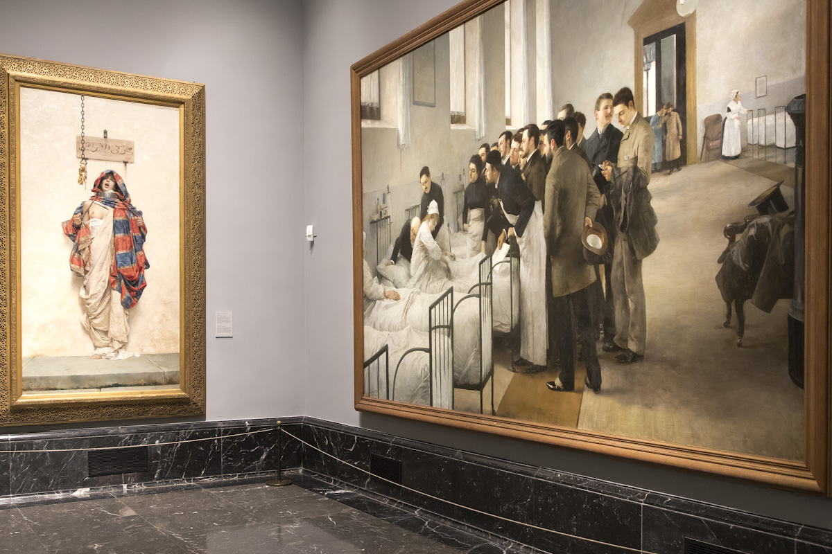 Entrando en el tercer cuarto del siglo XIX, el visitante encuentra a Fortuny en la sala 63 B, pintor reconocido internacionalmente por su extraordinaria habilidad y relacionado aquí a través de una de sus mejores copias, la del San Andrés de Ribera, y una de sus obras más destacadas, el Viejo desnudo al sol, con la tradición pictórica española.