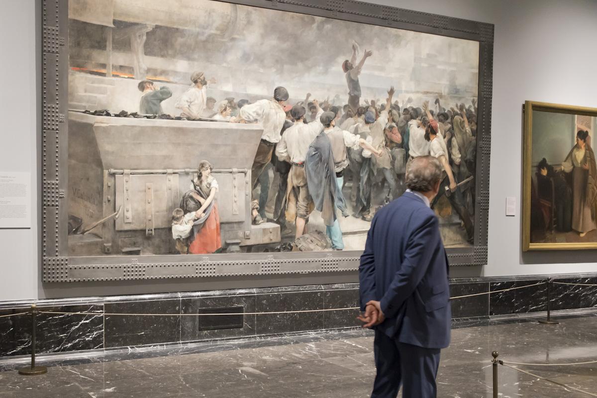 Tras el agotamiento de la pintura de historia y con el auge del naturalismo, la pintura social se convirtió en la manifestación más difundida del arte de la última década del siglo XIX. A la obra de Sorolla, ¡Aún dicen que el pescado es caro!, se une ahora en la sala 61 A, entre otras reivindicaciones sociales, Una huelga de obreros en Vizcaya de Cutanda, que interpreta las revueltas del sector de la siderurgia, con una reproducción del marco original de la obra. En esta misma sala, dos mujeres que se incorporaron públicamente a la práctica de la pintura, María Luisa de la Riva y Fernanda Francés, y una representación de pintores nacidos en las Filipinas españolas. Y se completa con la sutileza del grupo escultórico de Miguel Blay, titulado Eclosión.