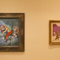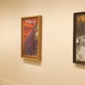 De 1917 es también La casa gris, donde el artista nos invita a viajar hasta su pueblo natal en esa especie de ensoñación que caracteriza casi toda su obra. No falta aquí uno de sus trabajos más conocidos, El violinista verde (1923 – 1924), elegida de hecho para el cartel anunciador de la muestra. En ella se nos presenta al músico como ese personaje bohemio y solitario que provisto de un solo objeto, el violín, sube al tejado para poder tocar sin molestar o quizás sin ser molestado. Al fondo, de nuevo, su pueblo, sobrevolado por uno de esos seres característicos del imaginario de Chagall.