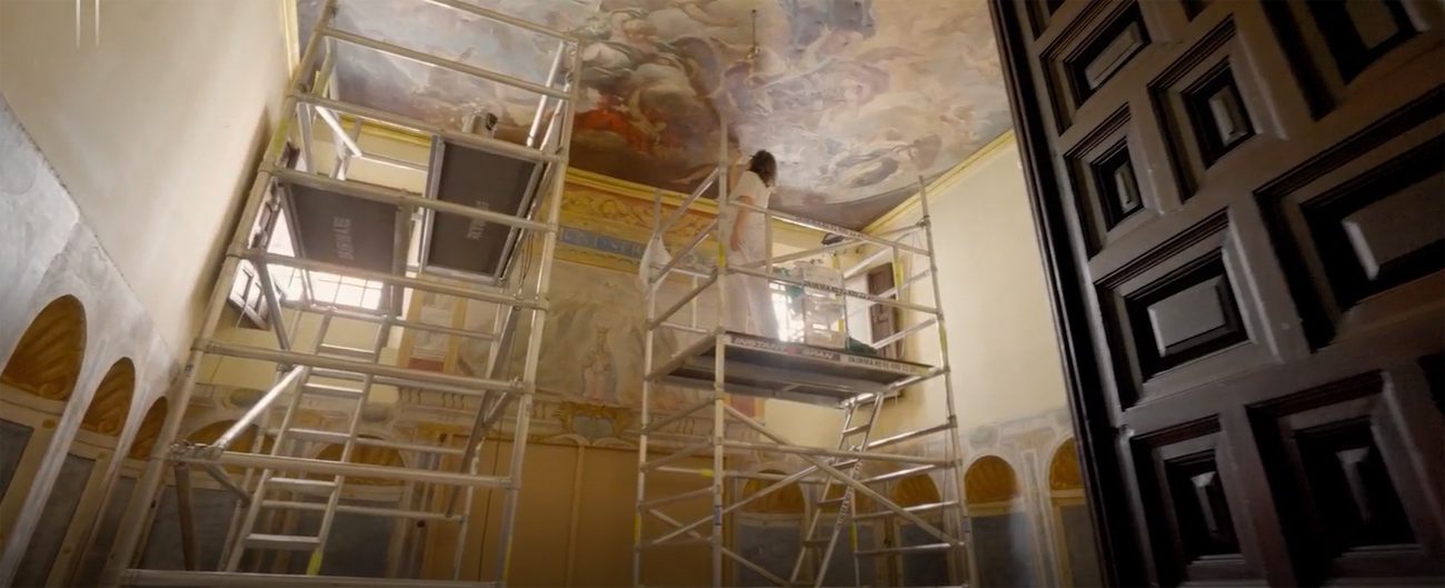 Los trabajos en la Capilla de la Dormición de Las Descalzas Reales destacan por su complejidad. El reto ha consistido en restaurar una gran pintura compuesta por varias telas cosidas por el reverso y fijadas al techo con clavos. “Giordano concibió La Asunción de la Virgen María como un gran lienzo para hacernos pensar que se trata de un fresco, pero sin ser un fresco”, destaca la conservadora Ana García Sanz.