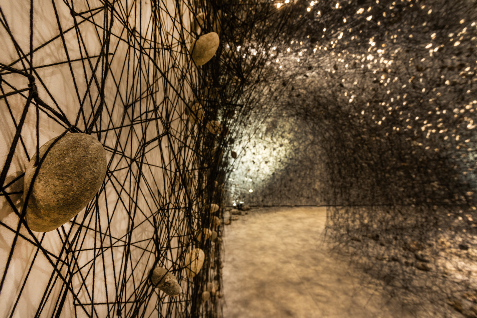 El espacio que alberga la instalación de Chiharu Shiota, anexo al Centro de Mineralogía de PLANTA, ha sido construido exprofeso. Sus rocas y minerales permiten un recorrido en el tiempo, desde los orígenes de las formaciones geológicas hasta nuestros días. Esta ubicación subraya el vínculo entre el sentido de la obra y el espacio que la alberga, al fin y al cabo las piedras son en cierto modo el origen de todo y el punto de partida también de In the beginning was…