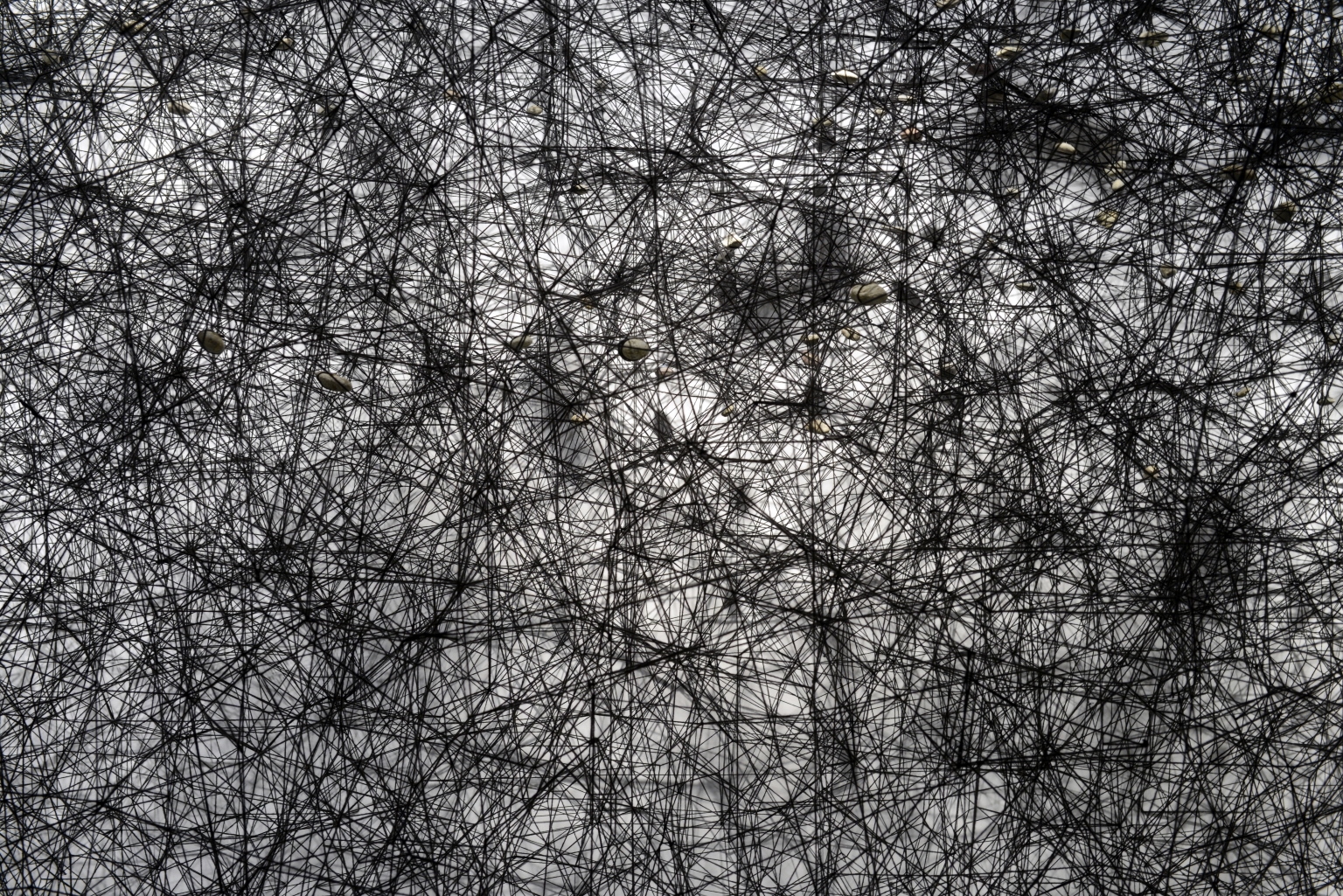 Los colores, las formas y las texturas del entorno hicieron que Shiota se decidiera a utilizar la piedra: «Cuando visité por primera vez la gravera lo que más llamó mi atención fue el bonito sonido que hacían las piedras al caer», recuerda. Pero la eligió como material no sólo por su relación con el paisaje de PLANTA sino por su vínculo con el origen del universo. La densa trama formada por hilos y piedras de la obra es una evocación del cosmos, a través de la cual la artista nos hace tomar conciencia de nuestra fragilidad.