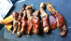 De allí, en un salto, a nuestra última parada de la mañana: el Balandro. Este espectacular local, grande y diáfano, con unas vistas geniales de la bahía, dispone de una barra larga larguísima, en forma de U, en la que se puede disfrutar de sus imaginativas tapas. Allí exploramos el paté de ortiguillas y el abanico ibérico en salsa de barbacoa casera y claudicamos con los deliciosos tacos de ropavieja.