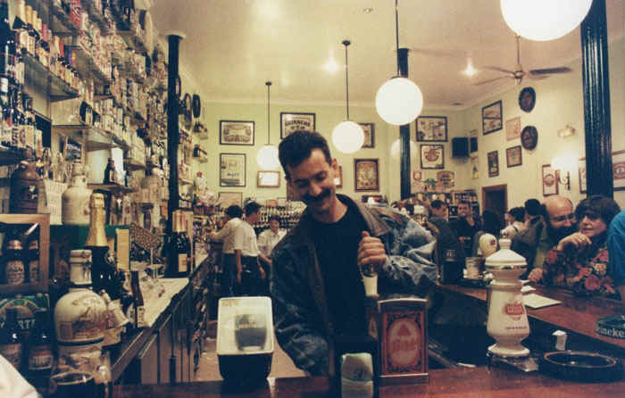 Pero no penséis mal, no hay recuerdos sórdidos ni lúgubres, sino alegres, luminosos y sabrosísimos. Sevilla, como muchas otras ciudades españolas, es un lugar lleno de bares, locales en los que la gente desarrolla su vida social desde el desayuno hasta la cena pasando por el aperitivo, el almuerzo o la merienda. Con el habitual tiempo seco y soleado de la capital andaluza, esa costumbre se lleva al extremo y en el repertorio se incluyen terrazas, veladores y ventas. Y entre taburetes de madera, sillas y mesas de latón o montaditos de pringá transcurrió mi infancia y primera adolescencia y se fraguó mi devoción por la hostelería tabernaria con enjundia.