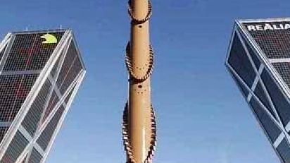 El último de los siete tramos que constituyen el fuste de acero del obelisco diseñado por Santiago Calatrava para la plaza de Castilla madrileña se...