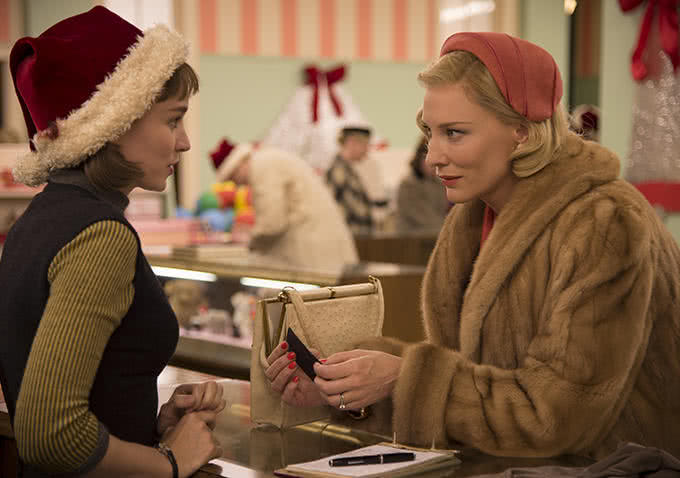 Blanchett y Mara se acompañan de Kyle Chandler y Sarah Paulson en un drama que se convirtió en una de las películas más aclamadas del pasado Festival de Cannes. En éste, Mara se alzó como mejor actriz, premio que compartió con Emmanuelle Bercot por Mon roi. La cinta, además, fue galardonada con la Palma Queer, una mención especial por su tratamiento respetuoso y bello de una historia de amor homosexual.