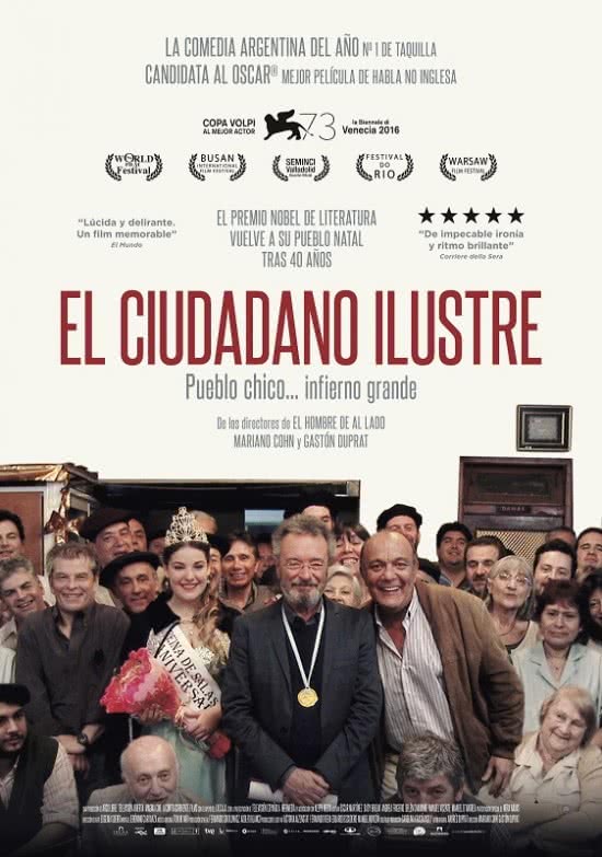 Además, El ciudadano ilustre crece en torno a un guion de Andrés Duprat muy medido que incorpora para bien una estrafalaria serie de personajes secundarios, como el chófer que acompaña al protagonista, el cutre mafioso de la localidad, la atrevida joven con ínfulas intelectuales dispuesta a lo que sea en persecución de sus fines, el marido de la que fue novia del escritor en su juventud… Todos aportan y dentro de la sordidez que marca lo que se cuenta, envuelven con ternura y humor una película que cuenta entre sus aciertos su capacidad para ser vista desde múltiples lecturas.