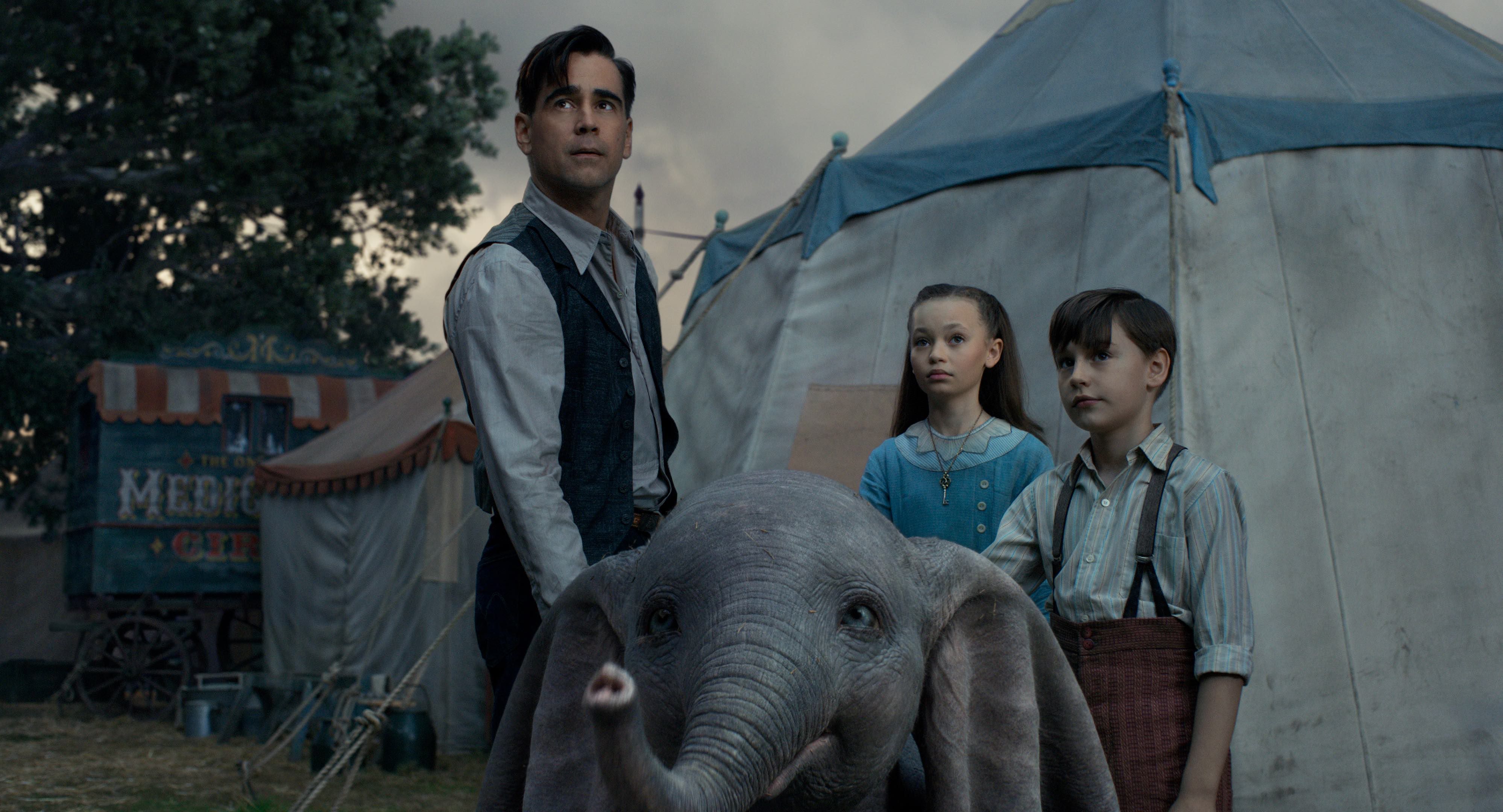 Tim Burton versiona la historia del mítico elefante de Walt Dysney. Holt Farrier (Colin Farrel) cuenta con la ayuda de sus hijos Milly y Joe para cuidar a un elefante recién nacido cuyas orejas gigantes le hacer ser el hazmerreír en un circo que vive ehon ras bajas. Max Medici (Danny DeVito), dueño del circo, sufre una fuerte decepción al saber de las enormes orejas del pequeño paquidermo hasta que descubre que es capaz de volar… todo cambiará a partir de ese momento.