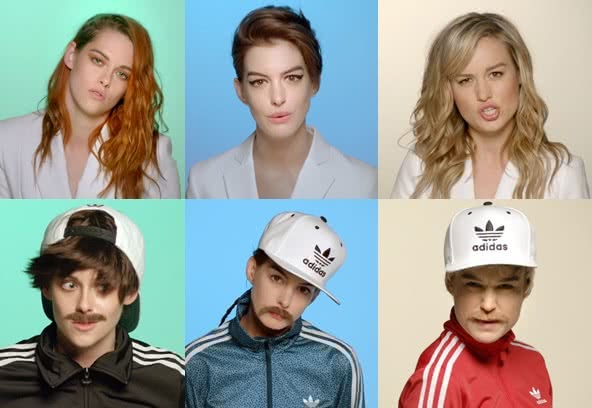 Para gritar basta ya a esos tópicos femeninos, Lewis se traviste junto a las actrices Anne Hathaway (próximamente en la Interstellar de Christopher Nolan), Kristen Stewart (aclamada en el pasado Festival de Cannes por su papel en Clouds of Sils Maria) y Brie Larson (de próximo estreno con Las vidas de Grace), con quienes realiza una parodia de la actitud que se espera de un «auténtico hombre».