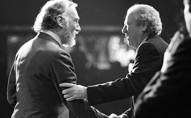 Totalmente distinta con uno y con otro. Desde que conozco a Berlanga a partir del libro, que supuso un año de conversaciones, se abre una relación de una cierta continuidad que, con periodos que he lamentado de no vernos mucho tiempo, fue bastante personal, de ir a su casa, de quedar. Desde mis puestos de responsabilidad en periódicos fui contando con él en diversas actividades y eso culmina en un hecho concreto, que es el fallido proyecto de la cuarta parte de la trilogía nacional (La escopeta nacional, Patrimonio Nacional, Nacional III). Fui el último guionista incorporado a ese proyecto. Hago la versión final y la película cuando está en fase de preproducción se suspende. Yo paso de hacer el libro sobre él a escribir con él y hacer un proyecto de película. En el plano profesional, uno de los grandes disgustos de mi vida es que ¡Viva Rusia! no se hiciera. Me habría encantado haber añadido a mi trayectoria ese guion. Todo iba encarrilado hasta el último momento.