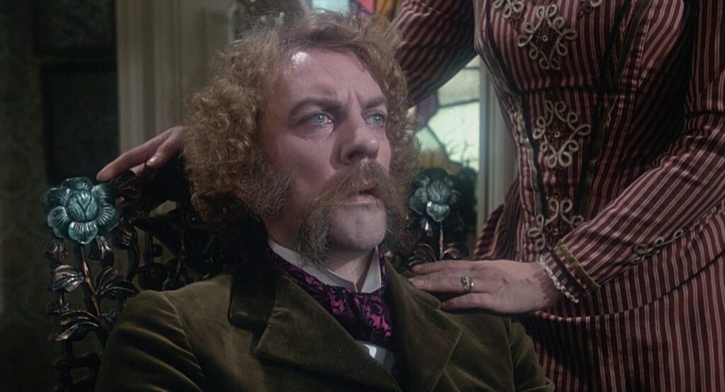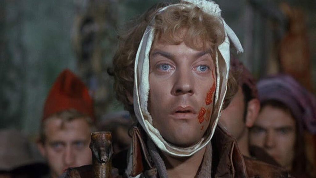 Atrás quedaban los tiempos en que fue el villano más inquietante de la gran pantalla. Por el camino, había dejado a su paso una serie de personajes inolvidables, que marcaron a generaciones: el excéntrico comandante de Los violentos de Kelly (Kelly’s Heroes, 1970), el detective enamorado de una prostituta de Klute (1971), un Giacomo Casanova de aspecto extraterrestre en Casanova (Il Casanova di Federico Fellini, 1976), un miembro del IRA que participa en un complot para secuestrar a Winston Churchill en Ha llegado el águila (The Eagle Has Landed, 1976), el profesor fumeta de Desmadre a la americana (National Lampoon’s Animal House, 1978), un ladrón de trenes en El primer gran asalto al tren (The First Great Train Robbery, 1978), un ladrón de bancos en Un hombre, una mujer y un banco (A Man, a Woman and a Bank, 1979), un espiritista victoriano de imposibles patillas en Asesinato por decreto (Murder by Decree, 1979), un padre de familia que trata de superar la muerte de su hijo en Gente corriente (Ordinary People, 1980), un sudafricano de clase media que abre los ojos ante los abusos de su país en Una árida estación blanca (A Dry White Season, 1989), un cura que investiga una serie de asesinatos en Los crímenes del rosario (The Rosary Murders, 1987), el sádico alcaide de una prisión en Encerrado (Lock Up, 1989), un pirómano en Llamaradas (Backdraft, 1991), el misterioso y anónimo informante de JFK: Caso abierto (JFK, 1991), un abogado alcohólico en Tiempo de matar (A Time to Kill, 1996), un general soviético en Ciudadano X (Citizen X, 1995) o uno de los vetustos astronautas de Space Cowboys (2000). En este artículo no hablaré de ninguna de estas películas, sino de un puñado de interpretaciones que marcaron mi infancia, cuando mis padres me descubrieron la magia que escondía el séptimo arte.