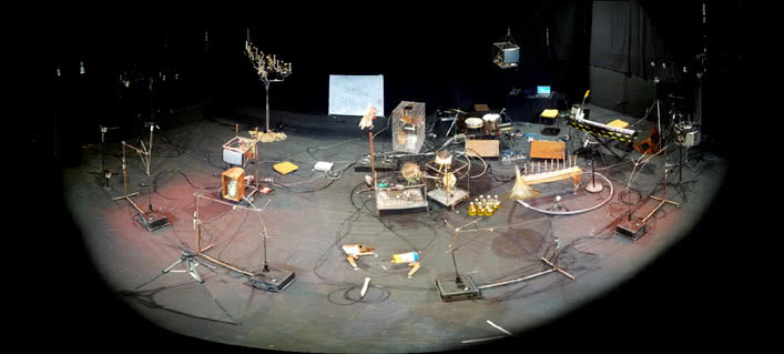 Esa máquina de la que habla se llama Tres tristes trons (Tres tristes truenos), y es un instrumento de instrumentos en sí mismo que contiene diferentes aparatos que se emplean para sulfatar, motores de parabrisas, un reloj, electroimanes, un cráneo de perro, muelles, ganchos de hierro, una máquina de escribir, platos, tambores… Cuenta Cabo de San Roque que tiene una apariencia así como delicada, bonita y agradable, pero que en realidad «tiene mucha mala leche» a la hora de tocar.