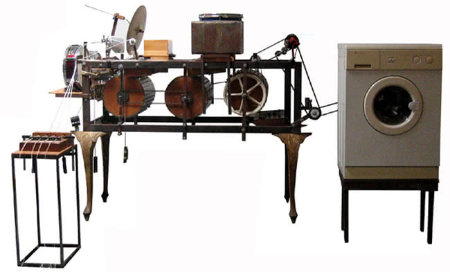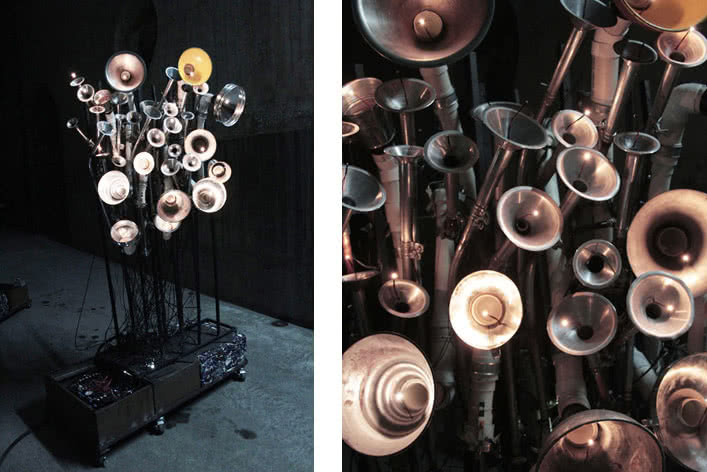 Arquitecto e ingeniera, en parte es lógico que Roger y Laia terminaran metidos en harina ‘electro-mecánico-arquitectónica’. Lo de crear sus propias máquinas surgió ya hace años, cuando él empezó a hacer réplicas de instrumentos convencionales y luego ambos se fueron complicando con motores o pequeños mecanismos que hacían siempre el mismo movimiento. “Cuando nos cansamos ya de los loops o de los loops normales empezamos a investigar y, claro, en nuestras construcciones intervienen la neumática, la electrónica, la electricidad, la física del sonido… Hemos ido aprendiendo con los años”.