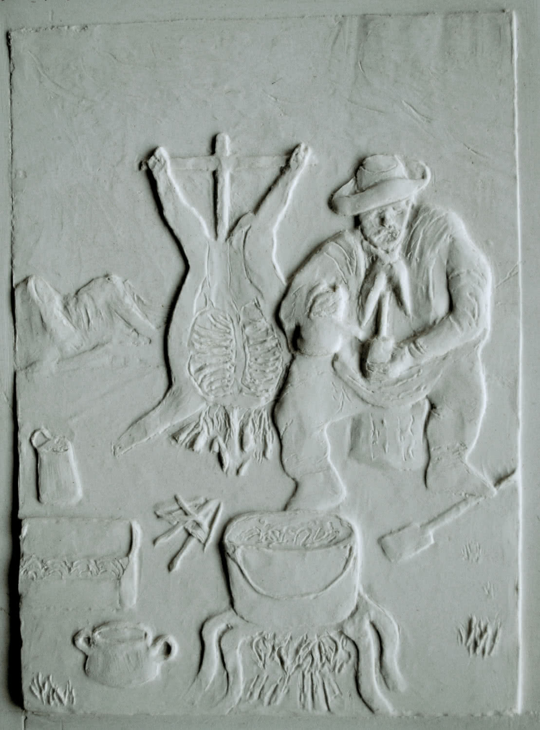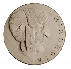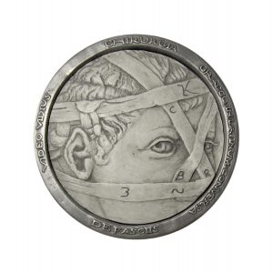 Diálogo a través de la Historia muestra el resultado de una profunda reflexión de jóvenes artistas complutenses, profesores, investigadores y alumnos de la Facultad de Bellas Artes, así como artistas invitados, en torno a la representación de oficios en el arte. Se encuentra organizada en dos partes, la primera de ellas, Medallística: Oficios puestos de relieve, comisariada por la profesora Consuelo de la Cuadra Meneses, está centrada en medallística contemporánea.