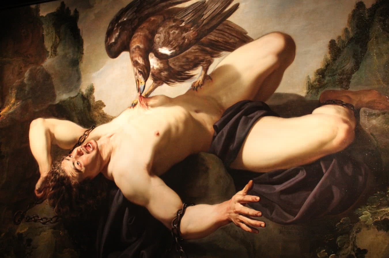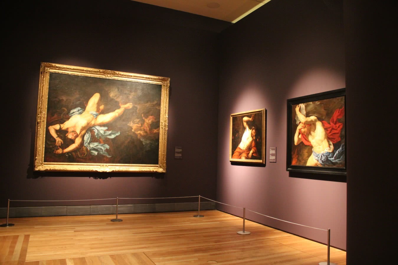 Las diversas obras se distribuyen en torno a una copia del Laoconte, exemplum doloris por excelencia y fuente de inspiración declarada de la mayoría de estos artistas. Una de los grandes préstamos para esta muestra es Prometeo encadenado, lienzo de Rubens y Snyders. La obra, propiedad del Philadelphia Museum of Art, puede ser contemplada en la sala 28 del edificio Villanueva hasta su instalación en Las Furias.