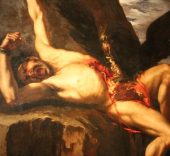 La elección de este tema no fue casual, ya que los cuatro condenados al Hades por desafiar a los dioses servían como analogía de los príncipes alemanes que se habían rebelado contra Carlos V, a quienes éste derrotó en 1547.