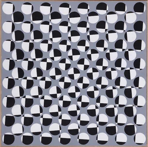 Francisco Sobrino es un artista fundamental para comprender el movimiento cinético y el OpArt, tanto porque su trayectoria ha estado vinculada al GRAV (Groupe de Recherche d’Art Visuel) como por la calidad y solidez de su obra. Comienzó sus estudios en la Escuela de Artes y Oficios de Madrid en 1946, que continuaría en la Academia Nacional de Buenos Aires en 1949, año en el que emigra con su familia a Argentina. En enero de 1959 se trasladó a París, siguiendo la estela de Victor Vasaley, y toma contacto con varios artistas franceses (Stein, Yvaral y Morellet) y sudamericanos (García Rossi y Le Parc, amigos de Buenos Aires) con los que forma el GRAV en 1960.