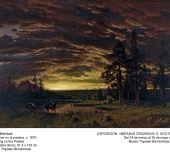 El crepúsculo como agonía del día, con su combate final entre luz y tinieblas, dará lugar a grandes espectáculos cromáticos. Para Bierstadt, uno de los primeros pintores del Oeste americano, el ocaso es un grandioso incendio en el cielo. Algo de ese drama, con rasgos más sombríos, persiste en el Atardecer de otoño de Nolde. Las franjas fluidas de color arriba y abajo parecen comprimir el pueblo en el horizonte, como aplastado entre el cielo y la tierra.