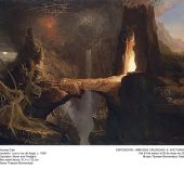 Otro maestro del paisaje simbólico romántico es el americano Thomas Cole. Su Expulsión. Luna y luz de fuego alude a la salida del Edén, aunque en el cuadro no aparezcan Adán y Eva. El puente y la cascada (formando una cruz), el volcán y la luna (otra vez el contraste de luces cálidas y frías) encarnan los extremos del destino humano.