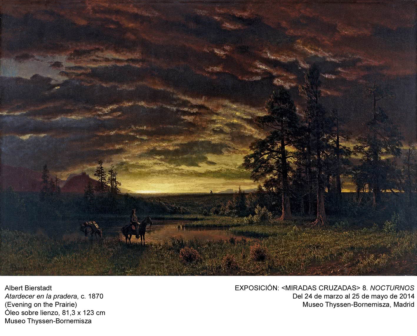 El crepúsculo como agonía del día, con su combate final entre luz y tinieblas, dará lugar a grandes espectáculos cromáticos. Para Bierstadt, uno de los primeros pintores del Oeste americano, el ocaso es un grandioso incendio en el cielo. Algo de ese drama, con rasgos más sombríos, persiste en el Atardecer de otoño de Nolde. Las franjas fluidas de color arriba y abajo parecen comprimir el pueblo en el horizonte, como aplastado entre el cielo y la tierra.
