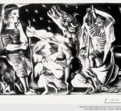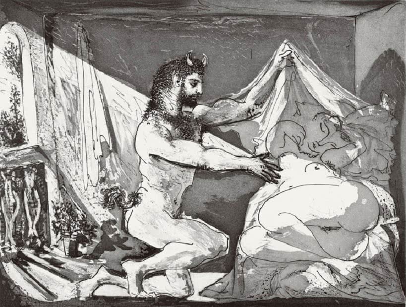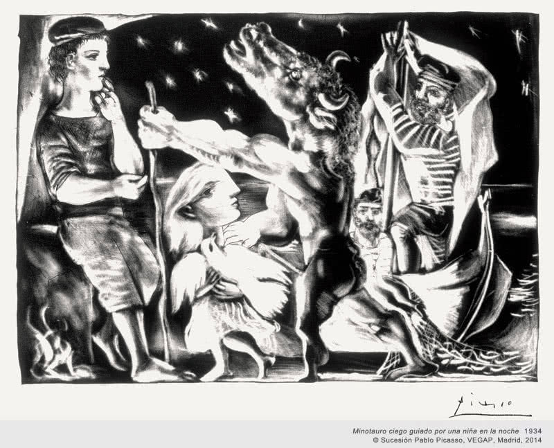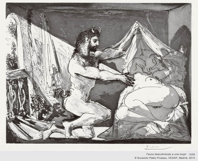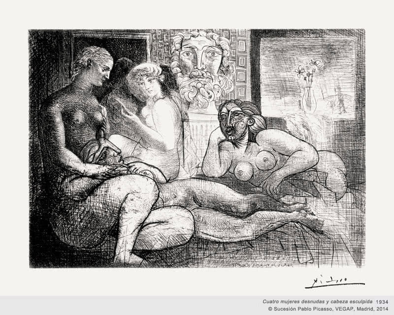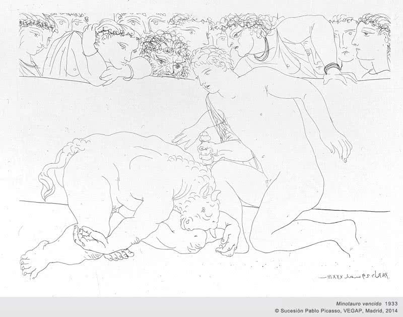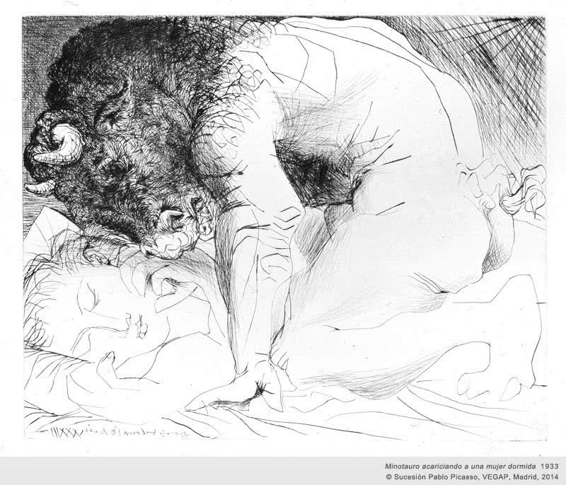 La muestra se articula en torno a varios temas: el taller del escultor, el Minotauro, Rembrandt y la batalla del amor. Esta variedad, la amplitud del periodo de creación y las técnicas de grabado empleadas –punta seca, buril, aguafuerte y aguatinta– permiten infinitas combinaciones de exposición de la serie.