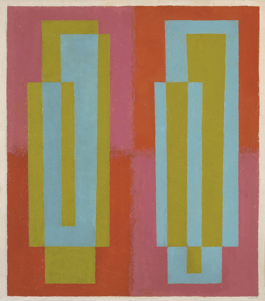 La selección de pinturas cubre las principales series en las que Albers trabajó: Variant/Adobe [Variante/Adobe], Structural Constellations [Constelaciones estructurales] y la célebre Homage to the Square [Homenaje al cuadrado], realizada en Estados Unidos durante las últimas décadas de su vida y que muestra la refinada gramática de un artista dedicado a experimentar la interacción de los innumerables matices del espectro del color.