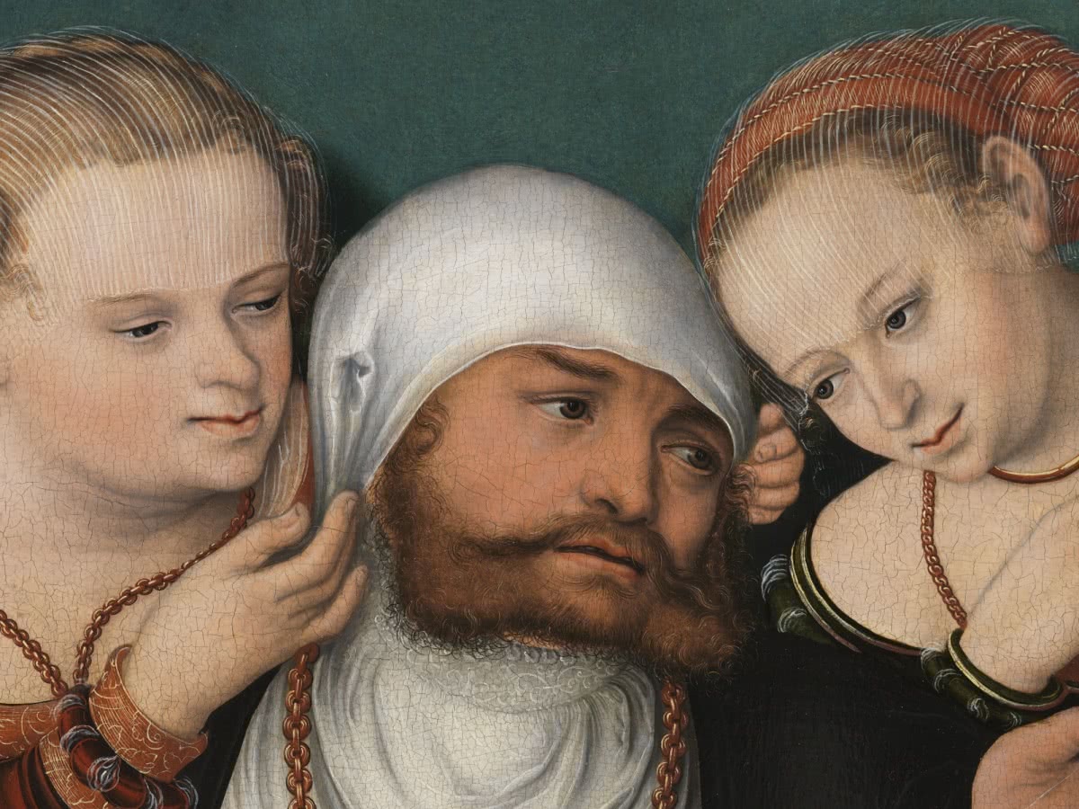 La limpieza posterior permitió aproximarse a los colores originales de Cranach, descubriendo que, por ejemplo, el verde del fondo es en realidad turquesa, o que las carnaciones de las mujeres son de un rosado que se asemeja a la porcelana.